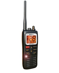 - Uniden Two-way VHF marine radio- Floating, die-cast chassis- JIS8/IPX8 submersible- Emergency strobe- AC and DC charger- Orange backlit LCD- Up to 12 hour battery life- All marine VHF channels- All NOAA weather channels- Memory channel scan- USA/interna